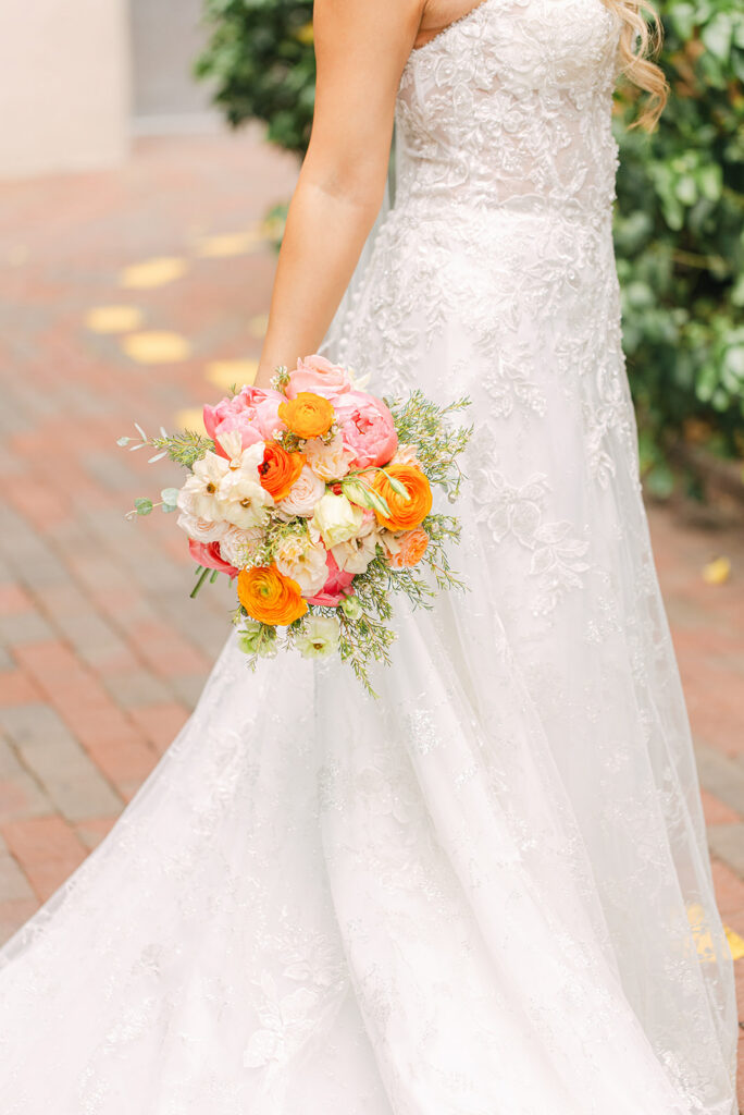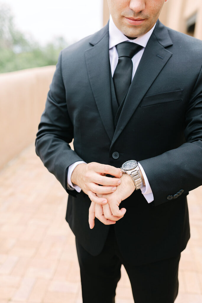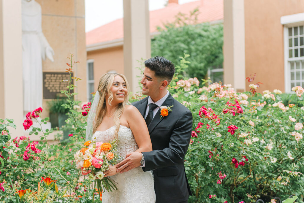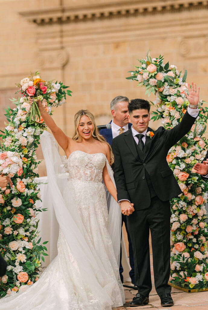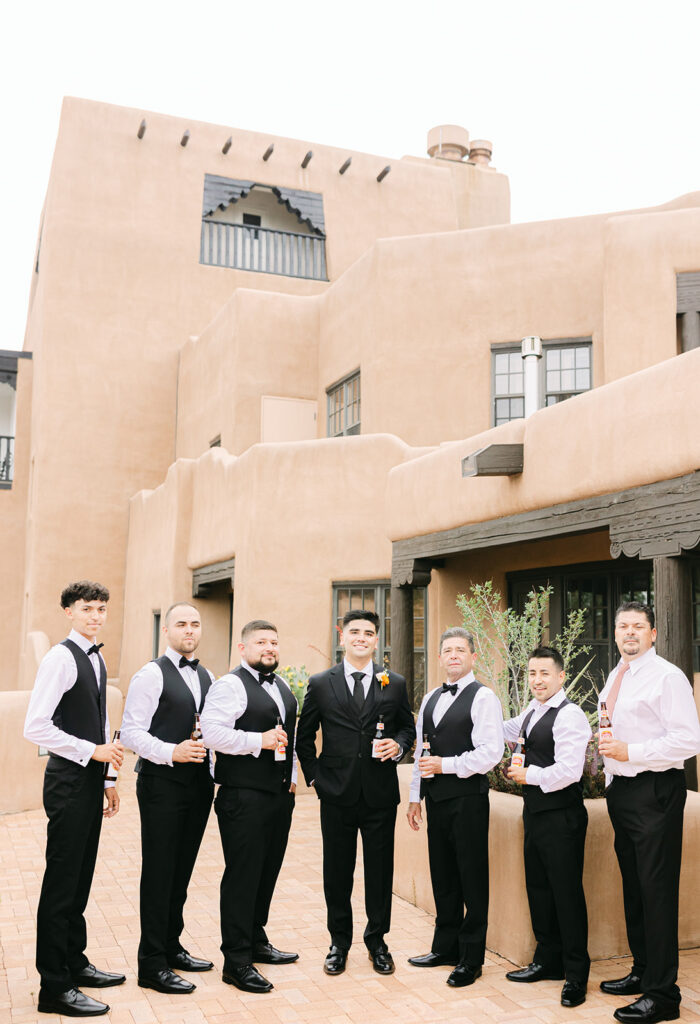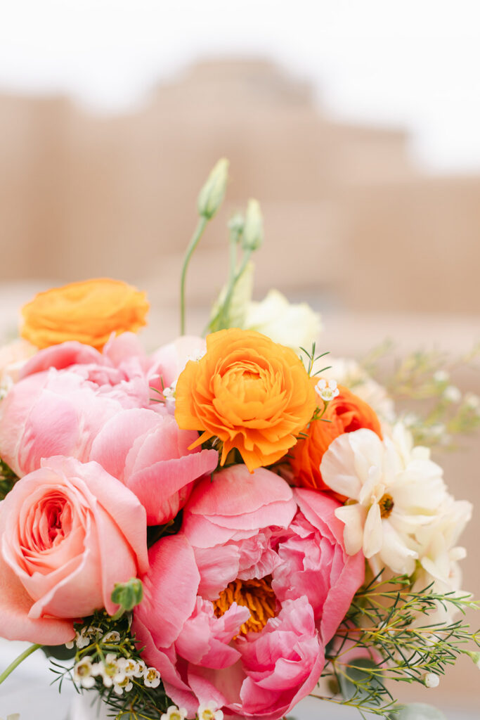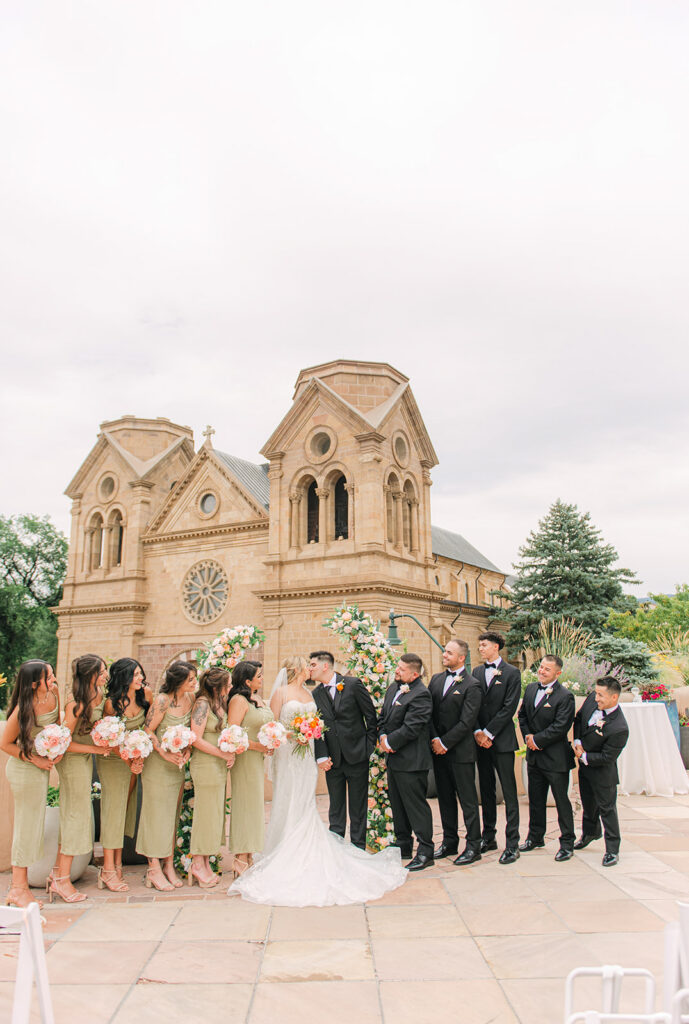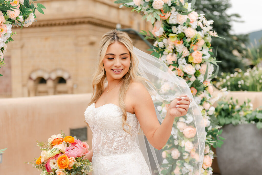 Regina and Kenneth’s wedding at La Fonda on the Plaza in Santa Fe, New Mexico was the perfect blend of vibrant spring color and meaningful tradition. Their day was filled with bold florals lush peonies and bright, joyful tones that brought so much life into the already iconic Santa Fe backdrop. One of the most special moments of the day was their traditional marcha dance, a New Mexico wedding tradition where family surrounds the couple in celebration, creating such a fun and emotional experience for everyone involved.