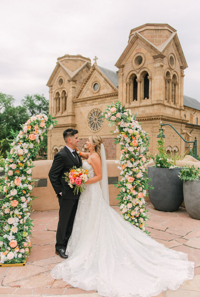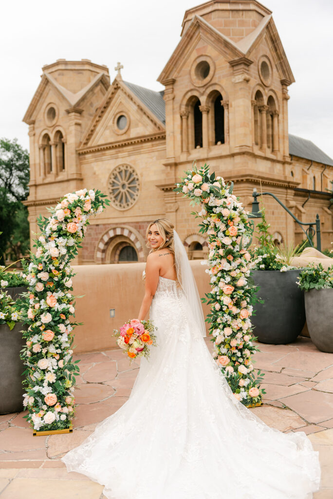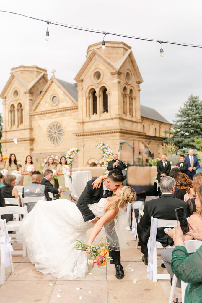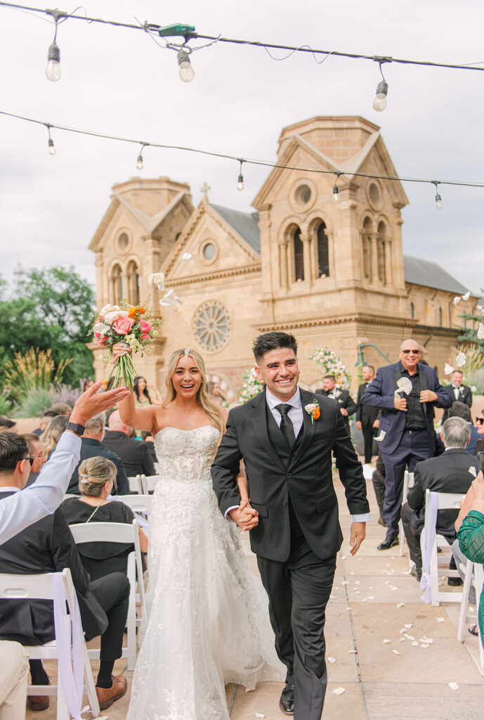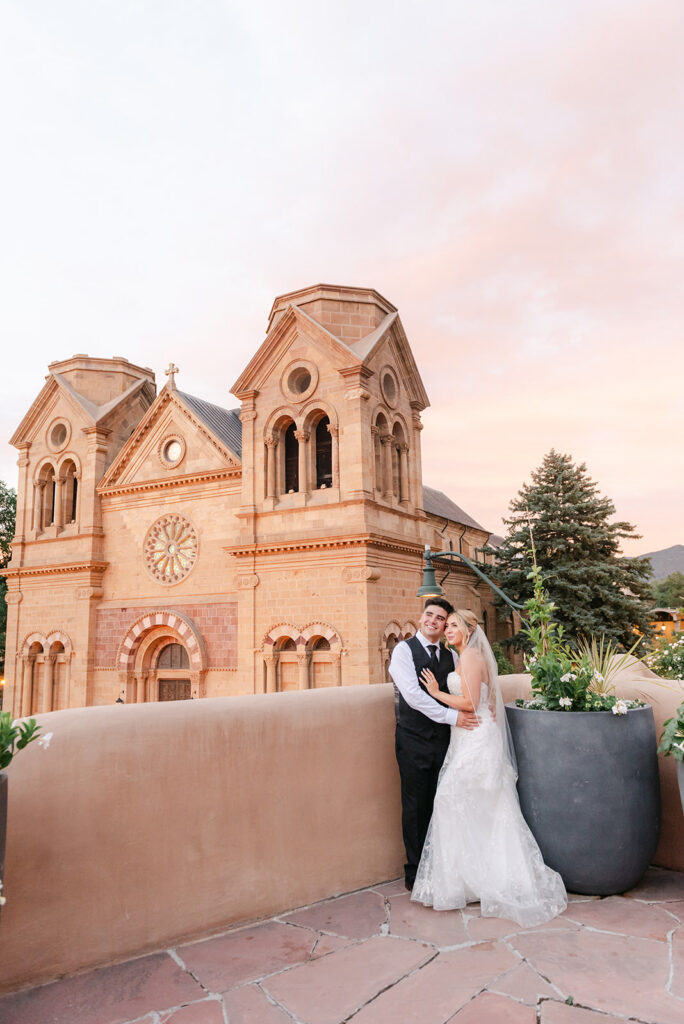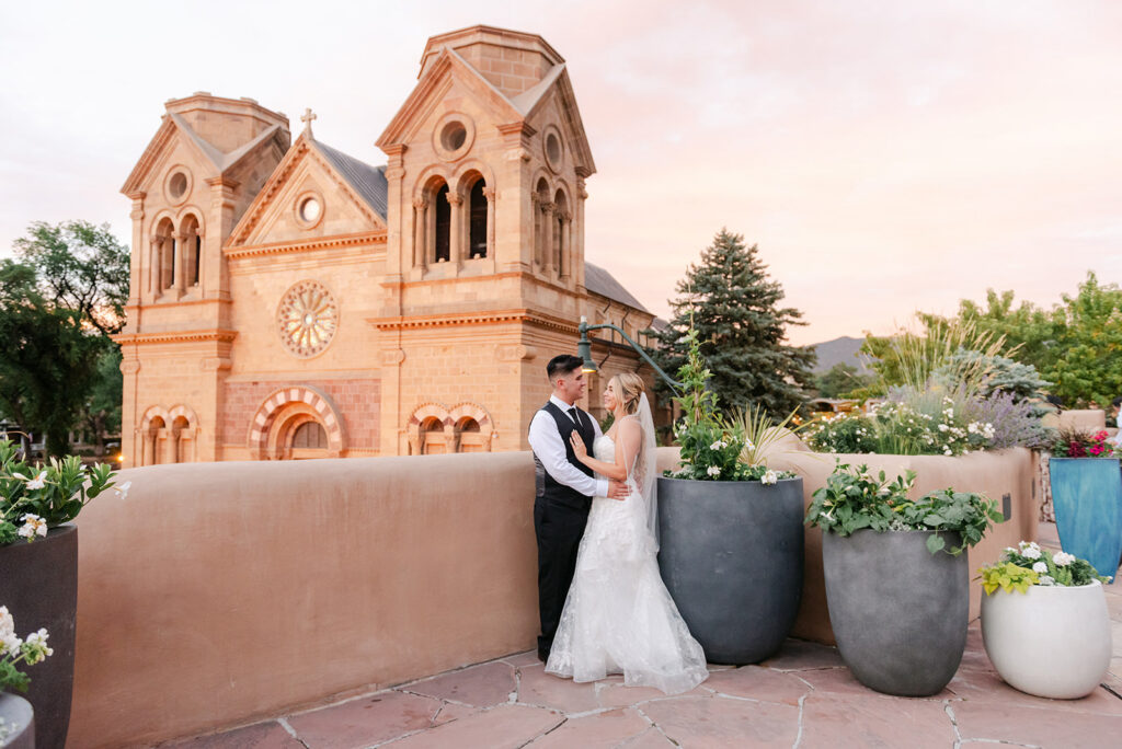 If you’re planning a wedding at La Fonda on the Plaza, it’s easy to see why it’s one of the most sought-after Santa Fe wedding venues. Located right in the heart of downtown Santa Fe, this historic hotel offers a mix of authentic New Mexican architecture, romantic courtyards, and iconic spaces like La Terraza, which overlooks the Cathedral Basilica and creates a stunning ceremony backdrop.
